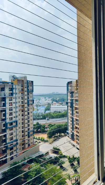 Secure your space with Sandeepu Invisible Grills Safety Invisible Grills and Stylish Cloth Hangers. Contact us for installation!